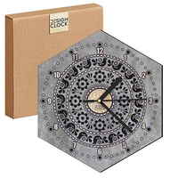 WOODEN WALL CLOCK CONCRETE HEXAGON