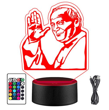 LED POPE JOHN PAUL II 3D NIGHT LAMP + REMOTE