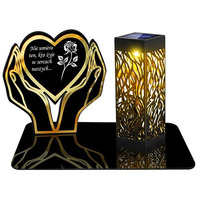 SOLARNY ZNICZ LED AŻUROWY PODSTAWKA STATUETKA NA CMENTARZ GRÓB DUŻA SERCE